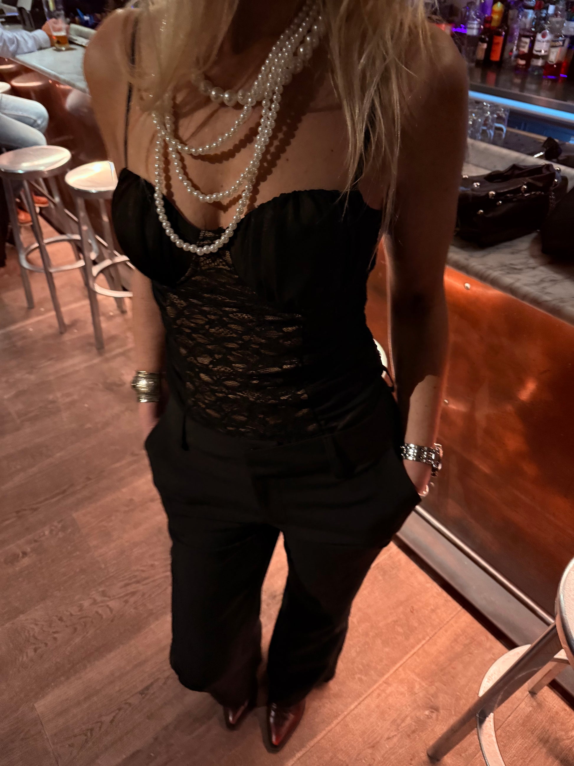 Deze prachtige body met kant is super leuk te dragen op een denim, met een blazer of jasje eroverheen. De body is met een string en voorgevormd met dunne pads bij de borsten, lijkt als een beugel maar dat is het niet. De body heeft de looks van een corset maar het gemak van een gewone body. De body heeft verstelbare bandjes om de hem helemaal perfect te laten zitten. De body is helemaal gevoerd in huidskleur, super mooi! Je kan deze body dragen als top of als lingerie. De maten die we hebben zijn S/M en M/L.