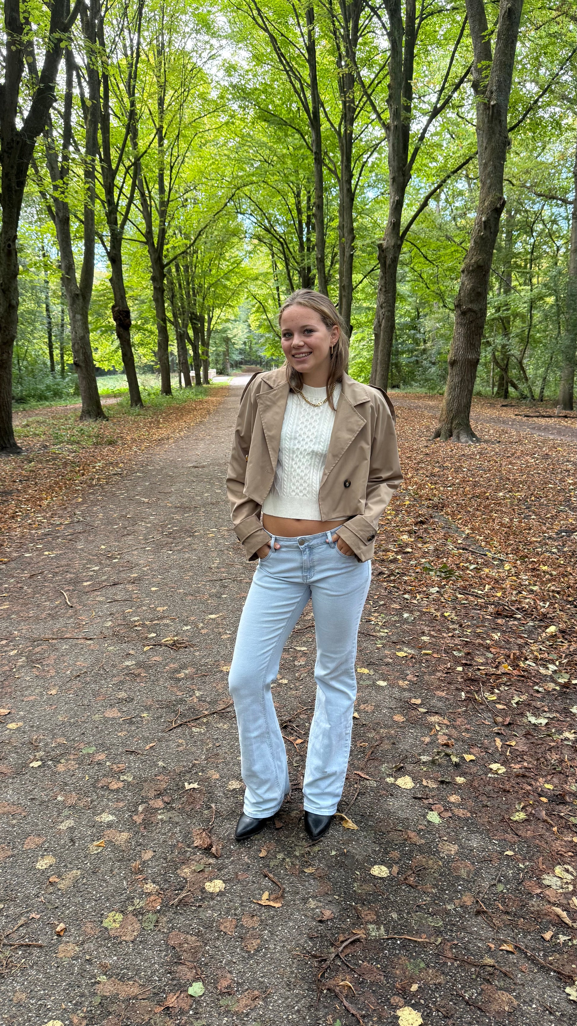 Deze super mooie korte trenchcoat kan je dragen als een jasje buiten of een blazertje binnen. De trenchcoat is gevoerd. Hij heeft hele mooie passende knopen en een double breasted sluiting. Het is 1 maat en kan gedragen worden van maat 34 t/m 40. De kwaliteit van de trenchcoat is 100% katoen.